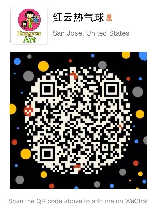 你也许会说:写作和一所艺术学校有什么关系呢?其实,它们的关联可大呢。红云艺术学校是我们知识共享、团队合作、自我表达的平台,绘画是一个工具,写作又是另外一样工具。红云老师常说:“艺术不仅仅是漂亮图画!”希望你成为我们的微信好友后,有机会与我们一起练习中文、交流想法并结交更多志趣相投的朋友 -- 这些朋友在你身边、在网络四通八达的地方、在全球各个角落。当我们把我们的故事与你尽情分享时,也欢迎你把它们与朋友、家人分享,更欢迎你把自己的所见、所闻、所思与红云热气球的伙伴们一起分享。