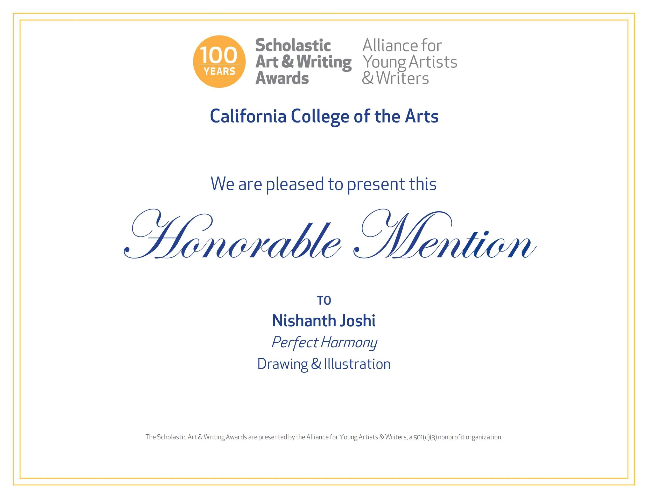 Congratulations to Nishanth J. (Age 15, Red Cloud) for receiving 3 Honorable Mentions in the 2022 Scholastic Art and Writing Awards. Great Job!